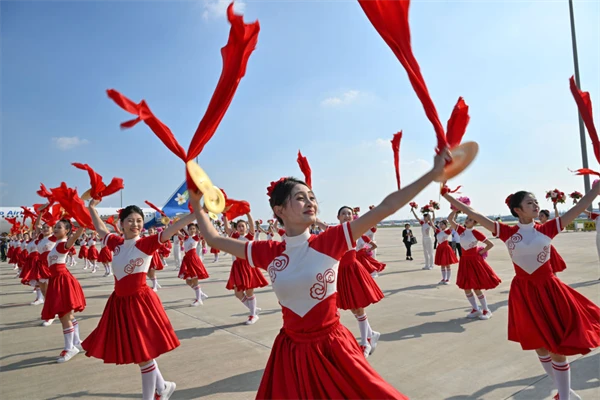 从伟大胜利到伟大复兴,红旗招展、万众欢腾,映照盛世气象;战旗猎猎,铁流滚滚,激荡时代强音。