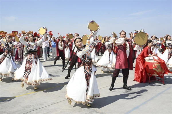 2025年9月23日下午,群众载歌载舞,喜迎新疆维吾尔自治区成立70周年。谢环驰 摄