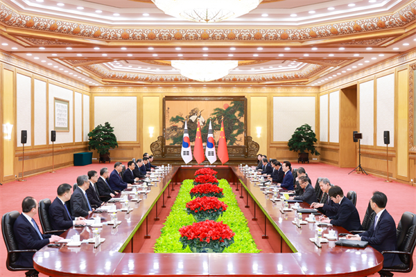 1月5日下午,国家主席习近平在北京人民大会堂同来华进行国事访问的韩国总统李在明举行会谈。刘彬 摄
