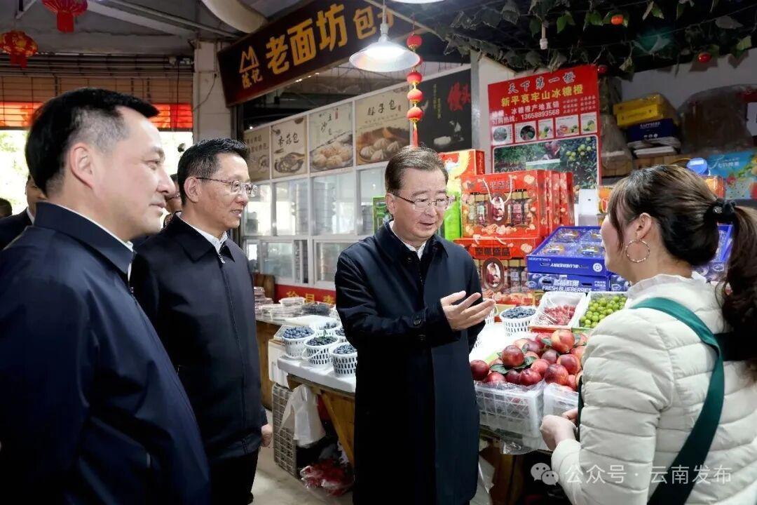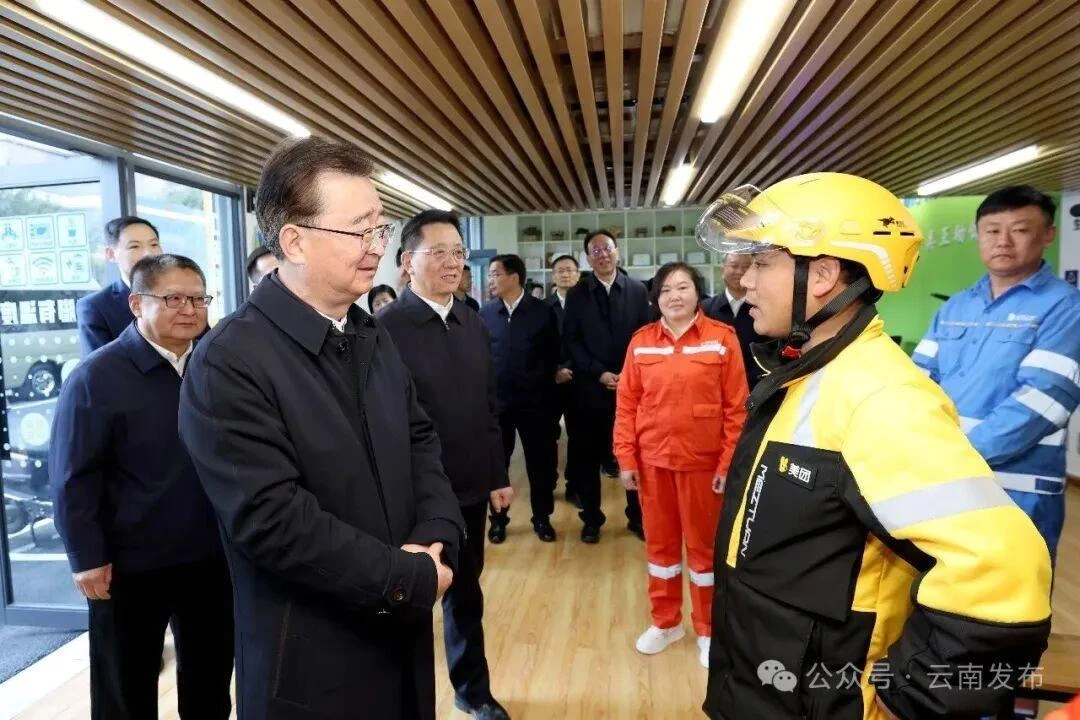 2月13日,省委书记王宁、省长王予波在昆明检查春节公安、消防、市场供应等工作,看望慰问环卫工人、快递小哥等一线劳动者,向各行各业值班值守人员致以诚挚问候,向全省各族干部群众致以新春祝福,强调各地区各部门要认真贯彻习近平总书记春节前夕看望慰问基层干部群众时的重要讲话精神,统筹抓好节日期间各项工作,让各族群众开心欢乐过好年。