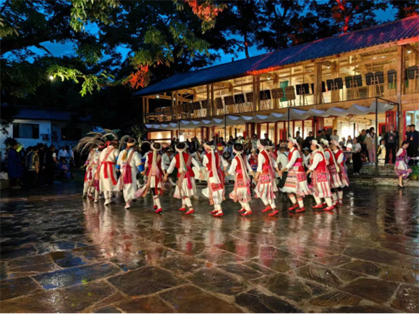 图为民族歌舞表演队在启别村表演傈僳族舞蹈阿尺木刮。图源:中国新闻网