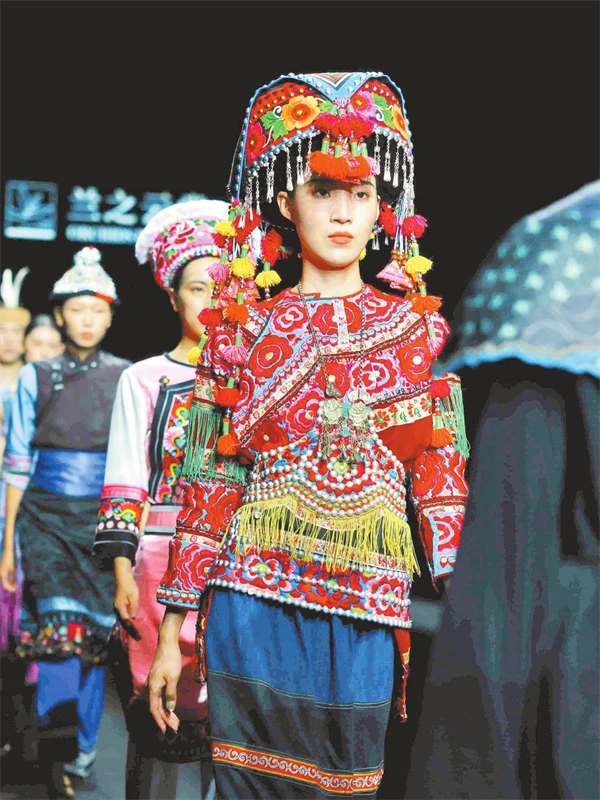 彝绣服饰亮相“兰之云裳”中外非遗服饰秀国际文化交流活动。通讯员 王洪 摄